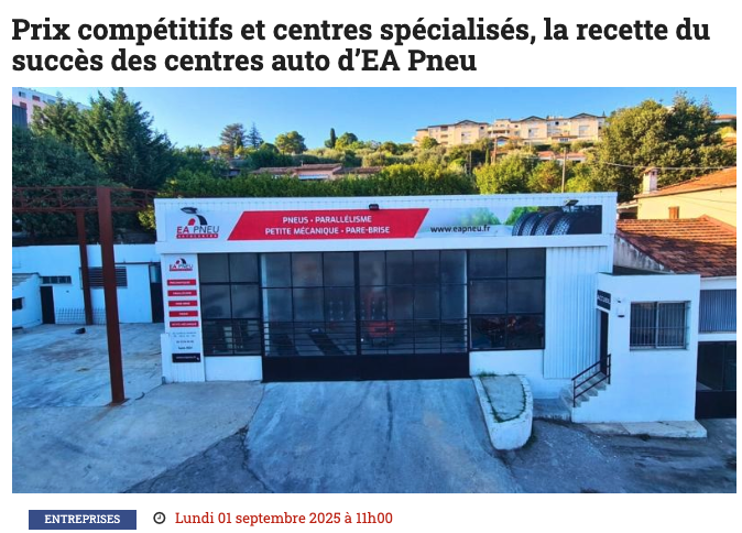 À travers ce regard extérieur, Tribune Côte d’Azur souligne également les valeurs humaines portées par le réseau EA Pneu et sa volonté constante d’innover, tant sur le plan social que managérial.